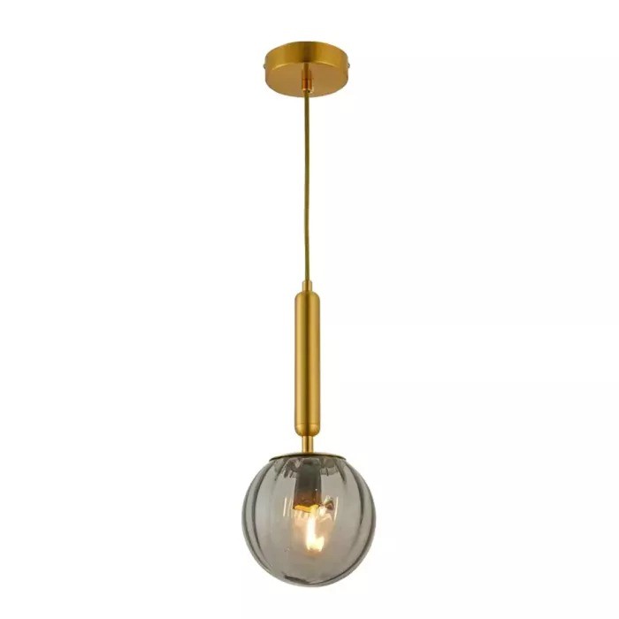 O Pendente Sindora Ø15×30cm une sofisticação e modernidade em uma peça elegante, com estrutura em metal e cúpula em vidro fumê.